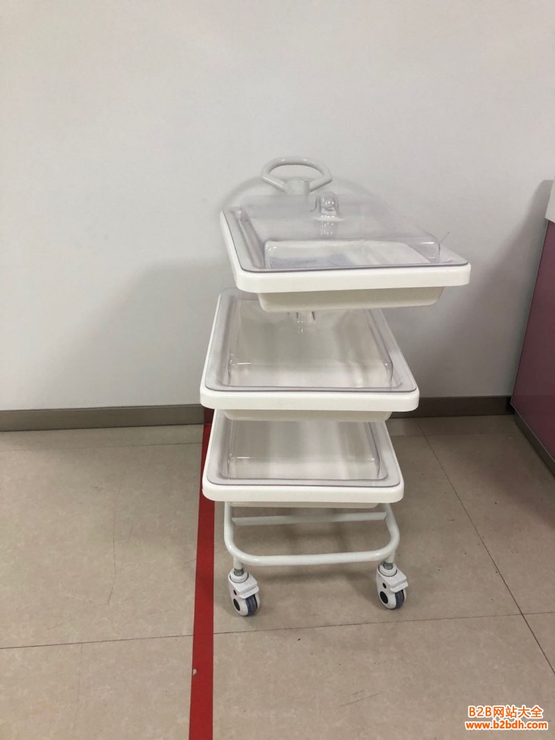 小推车二层、三层独立式设计,周转盘材料由高分子复合材料独立开模制成,车体由钢体喷塑而成,具有耐腐蚀、不沾水、车行顺畅、取放方便等优点。盘内内镜存放导航隔条使污染部分分离。多层设计使客户在使用过程中可将清洁和污染的内镜分层标明后置放,可达到高效周转,避免交叉感染等功效。